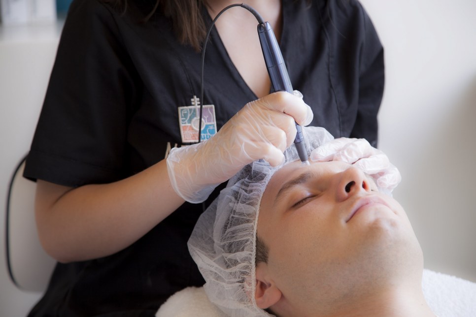 Χρησιμοποιούμε μια ψηφιακή συσκευή, Ολλανδικής κατασκευής, που στην άκρη της προσαρμόζονται κεφαλές με λεπτές βελόνες, ώστε να δημιουργήσουμε μικροδιατρήσεις στο δέρμα.