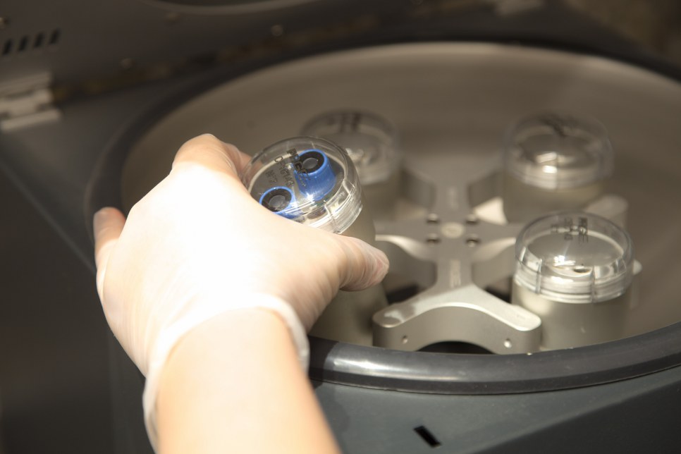 - Στη συνέχεια τοποθετούμε το αίμα σε φυγόκεντρο, για να πετύχουμε διαχωρισμό του σε 3 μέρη (στο πλάσμα, στα αιμοπετάλια και στα λοιπά συστατικά) και τελικά να πάρουμε μέρος από το πλάσμα του αίματος και τα αιμοπετάλια.
